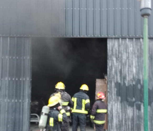 Fueron tres las dotaciones de voluntarios que se requirieron para trabajar en el sector. El galpón de grandes dimensiones está situado sobre calle Las Heras entre Zapala y 9 de Julio, a una cuadra del supermercado La Anónima.