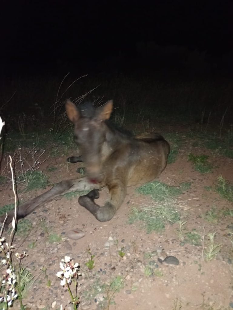 El animal fue trasladado hasta el cuartel de bomberos voluntarios de Plaza Huincul y esperan un profesional en veterinaria para que lo puedan atender. El potrillo fue herido en una de sus patas y se encuentra sin marca ni señal.