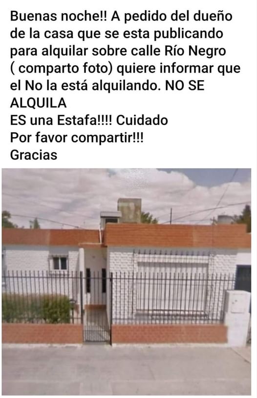 En una advertencia reciente, los vecinos de Cutral Co están alertando sobre un preocupante aumento de estafas de alquiler en la localidad. En particular, un lector se comunicó con este medio para denunciar una propiedad en la calle Río Negro que se está ofreciendo como alquiler, a pesar de que el propietario asegura que se trata de una estafa.