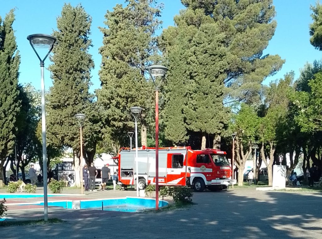 El propio jefe del cuartel, Darío Campos fue el encargado de explicar que “fue convocada una dotación para bajar la pelota de unos chicos que estaban jugando de uno de los pinos más grandes de la plaza y la bajamos con un chorro de agua”.