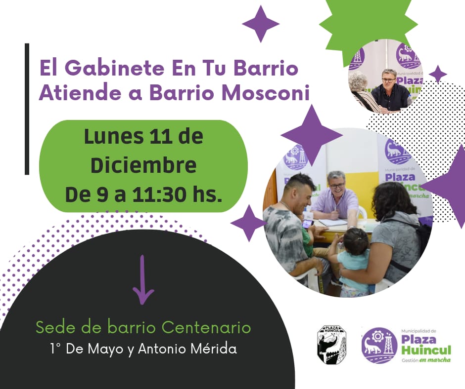 La atención se realizará en la sede vecinal del barrio Centenario, ubicada en la intersección de las calles 1° de Mayo y Mérida. El horario de atención será de 9:00 a 11:30 horas. Para garantizar la participación de los residentes del barrio Mosconi, se solicita que acudan con su Documento Nacional de Identidad (DNI) para verificar la residencia en la zona.