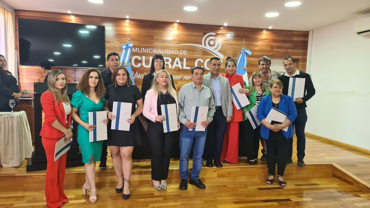 La ceremonia se concretó hoy en el salón de Acuerdos Américo Verdenelli. El intendente Rioseco fue el encargado de encabezar el acto junto al resto de los funcionarios del gabinete municipal.