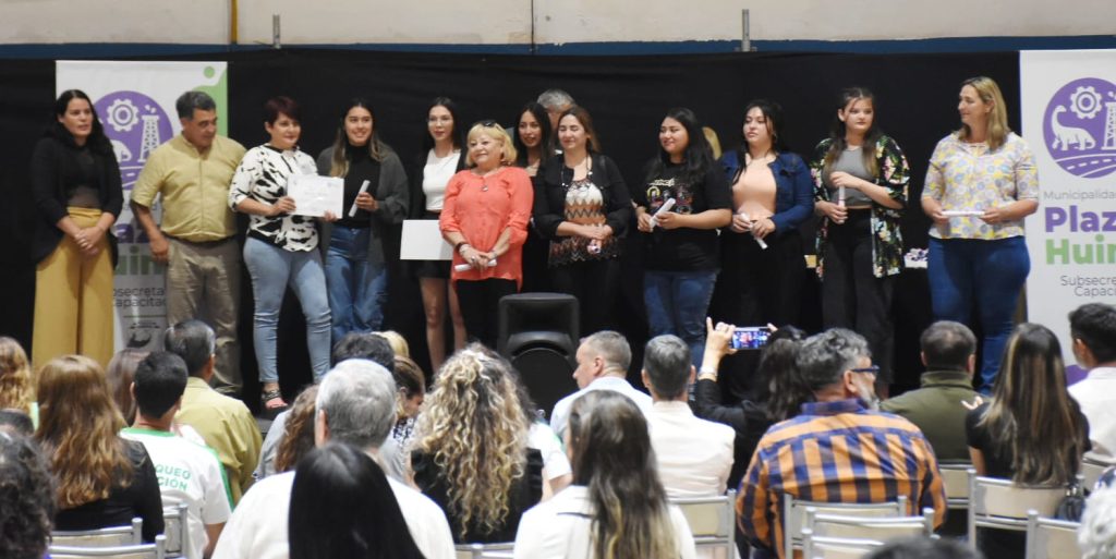 La ceremonia de fin de año del Centro Municipal de Capacitación y Entrenamiento Municipal, dependiente de la Subsecretaría de Capacitación de Plaza Huincul, se desarrolló en Club Plaza con la entrega de más de 500 certificados de finalización de curso en distintos rubros: corte y confección, bordado chino, muñequería y manualidades, taller Navideño, pintura, decoupage, tejido.