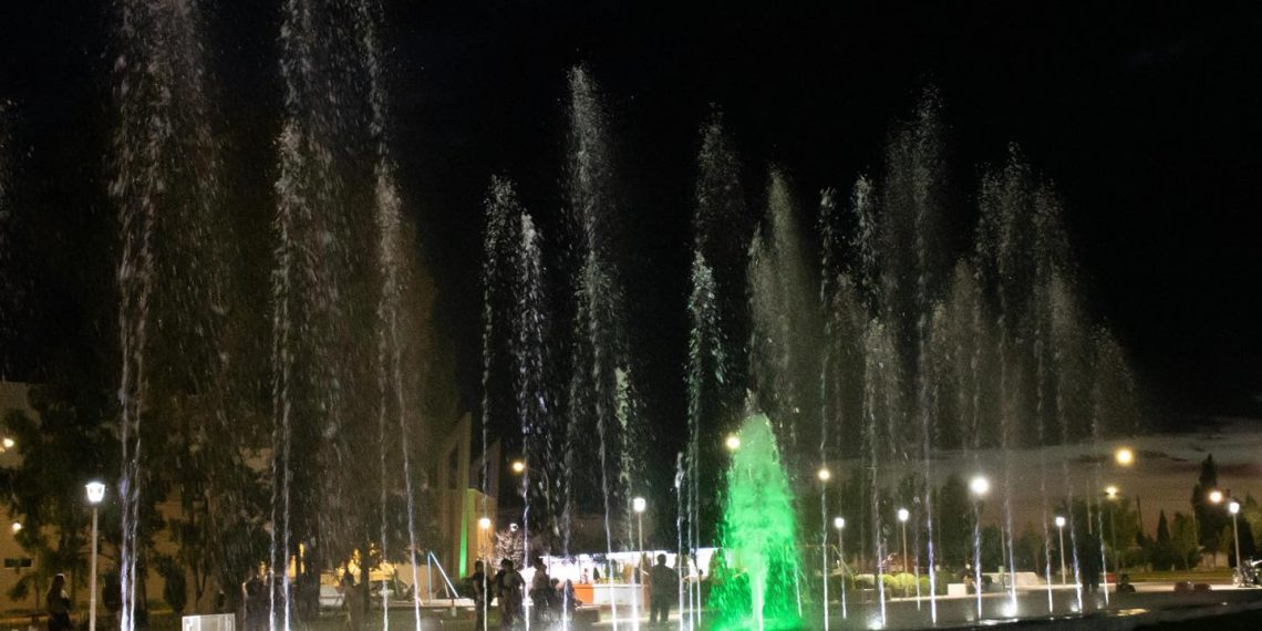 Como se había informado, la fuente de aguas danzantes fue inaugurada hace pocos días, funciona en el Parque de la Ciudad de Cutral Co, a pocos metros de la ruta nacional 22, rumbo a Zapala.