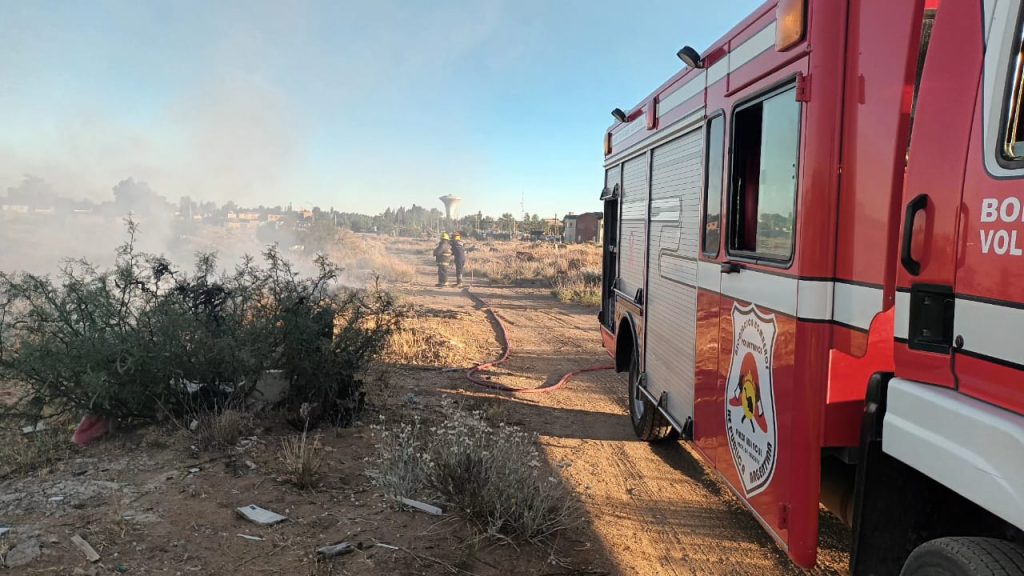 Esta tarde, los bomberos voluntarios de Plaza Huincul acudieron a sofocar un incendio de pastizales que se registró cerca de la ruta provincial N° 17, en inmediaciones al hotel.