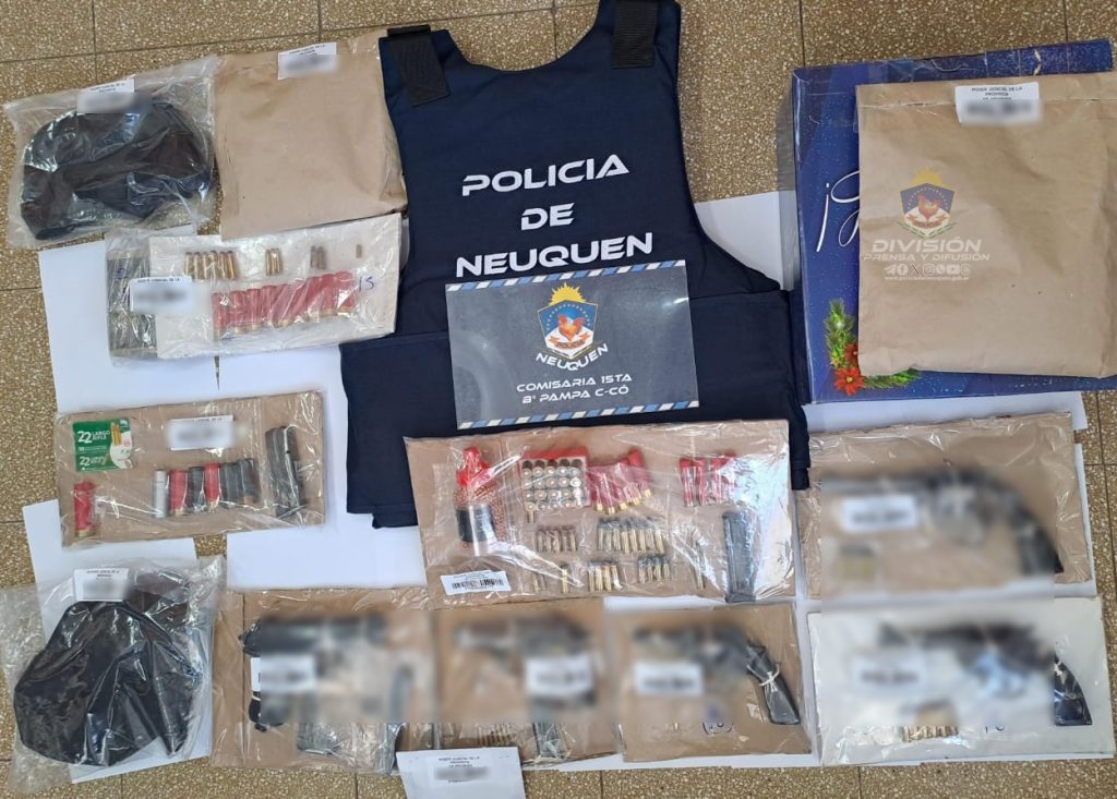 Más tarde, desde la Policía se informó que se incautaron un revólver calibre 38º, una réplica de arma de fuego tipo aire comprimido, un revólver calibre 39º, una pistola Bersa calibre 22º y un arma calibre 7.62; como así también gran cantidad de municiones de diversos calibres.
