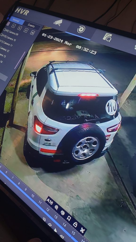 Una persona denunció el robo de la camioneta marca Ford, modelo Ecosport, de color banco y con patente NRM 494. La imagen del vehículo es la que se observa en la fotografía tomada desde las cámaras de seguridad.
