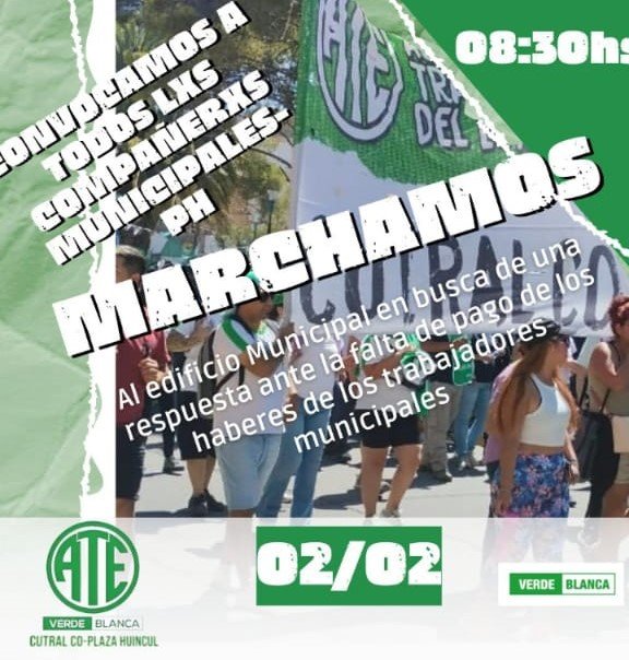 En Plaza Huincul, el gremio ATE convocó a una marcha al edificio municipal para reclamar por el pago salarial que corresponde a enero.