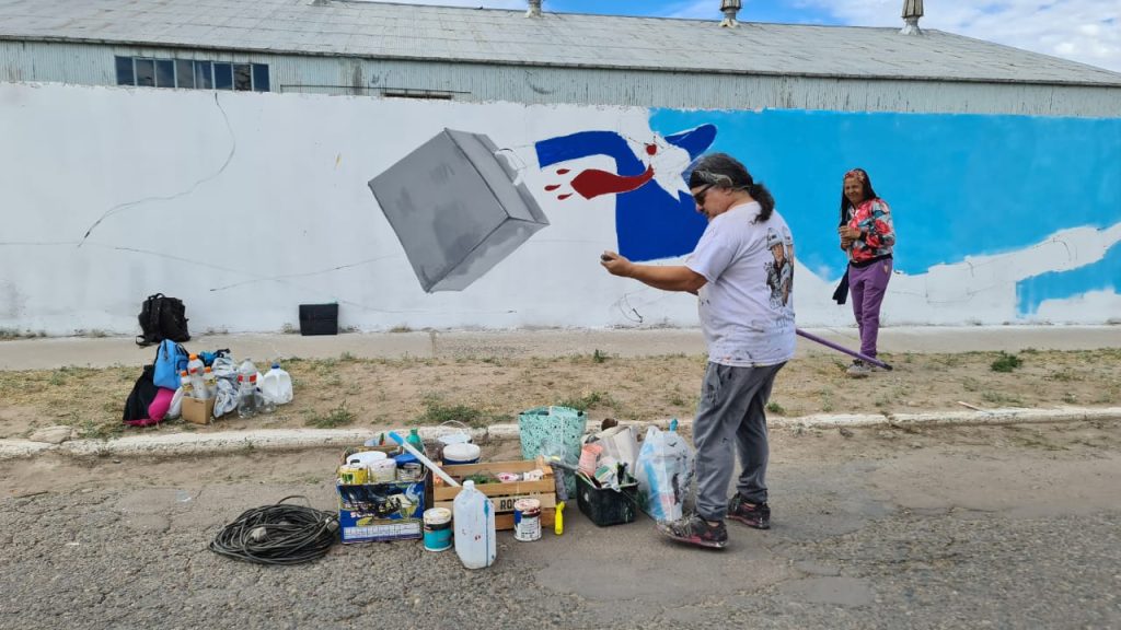 Como ocurre cada 22, las familias de los operarios muertos Fernando Jara, Víctor Molina y Gonzalo Molina los recordaron. Esta vez, fue a través del mural que lleva adelante el artista plástico Chelo Candia, que viajó desde General Roca, para sumarse a la exigencia de justicia y por la memoria.