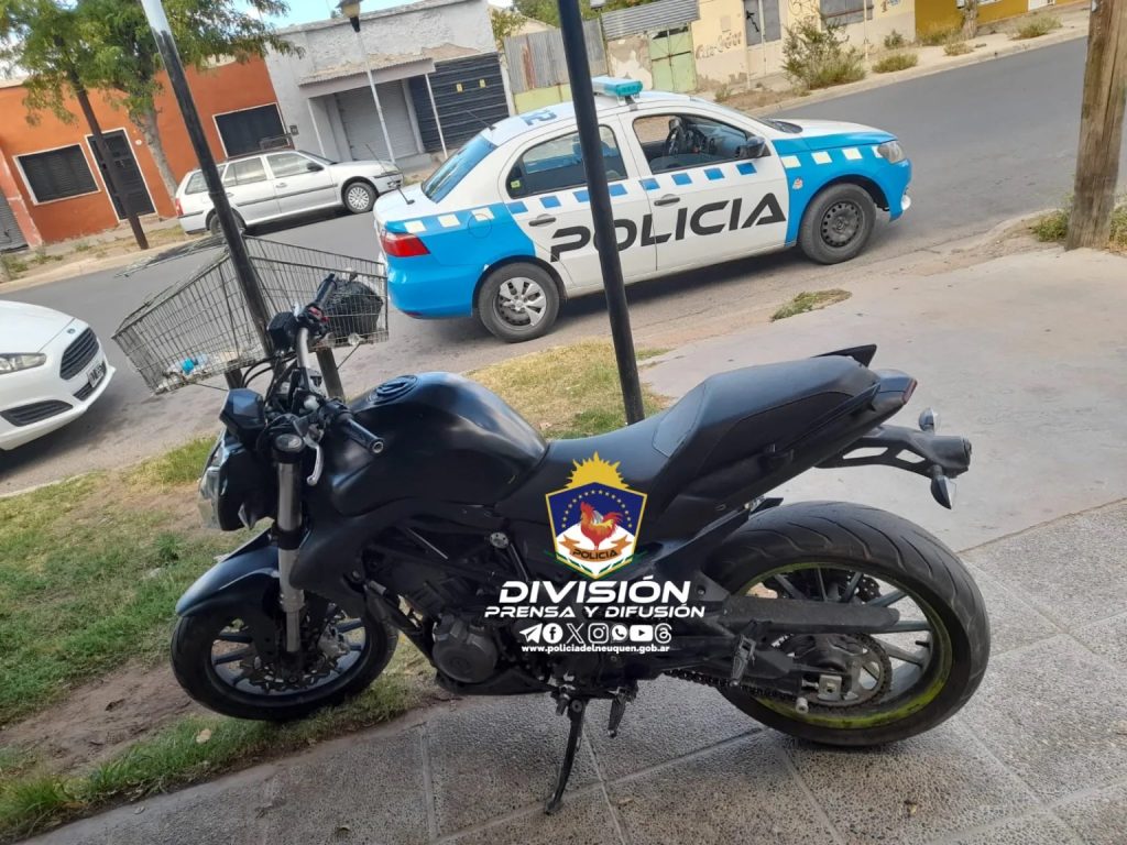 Desde el Comando Radioeléctrico se informó que secuestraron una motocicleta denunciada como sustraída en la localidad de Plottier.