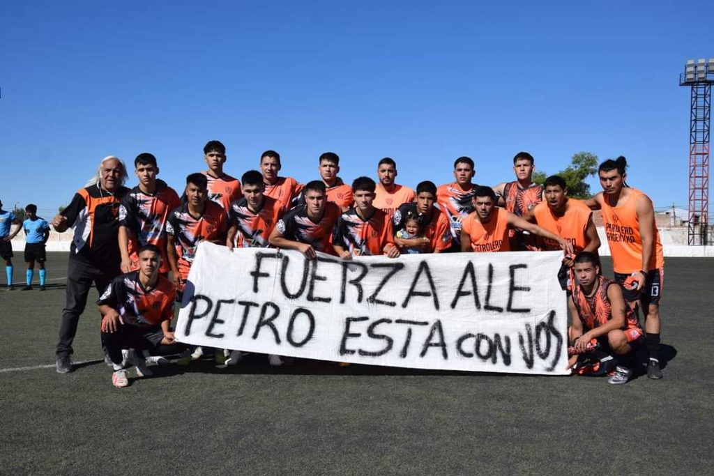 En la entrada de los equipos, Petrolero mostró una bandera en apoyo para Alexander Maldonado que tienen que ser operado de su rodilla y estará varios meses fuera de las canchas.