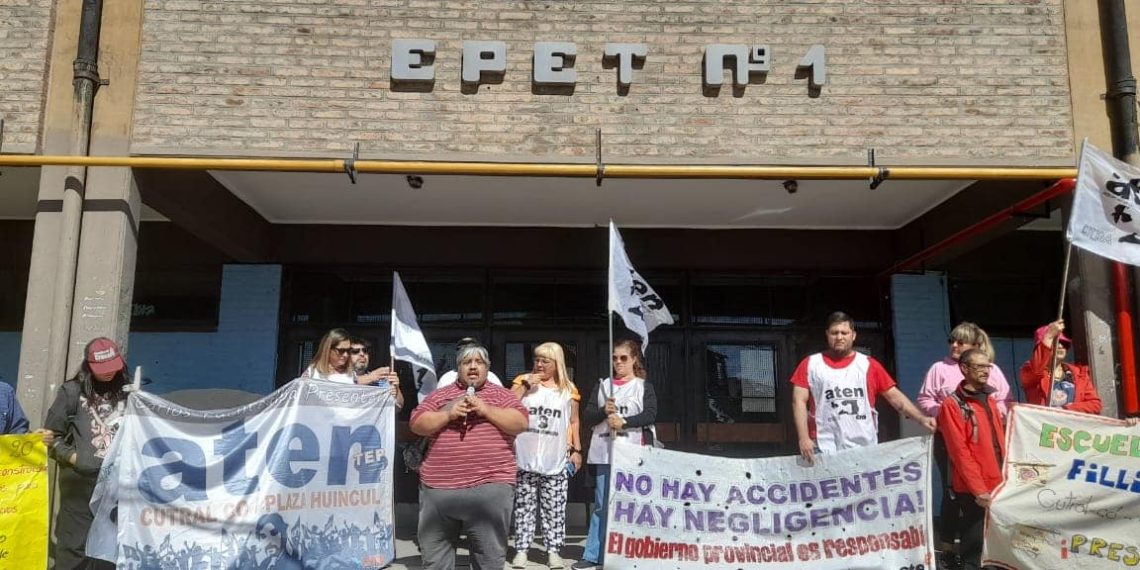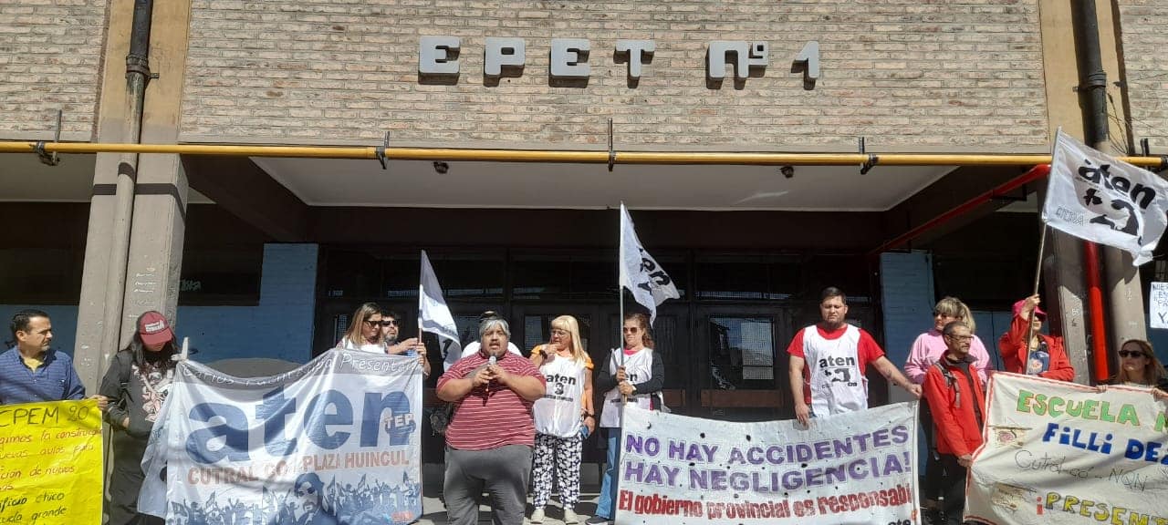 Como parte de las actividades organizadas para hoy en el segundo día de la medida de fuerza que llevó adelante el sindicato docente neuquino, ATEN, las y los docentes se concentraron en la zona céntrica y luego fueron hasta la EPET N° 1 de Cutral Co, que no tiene definiciones todavía de inicio del ciclo lectivo.