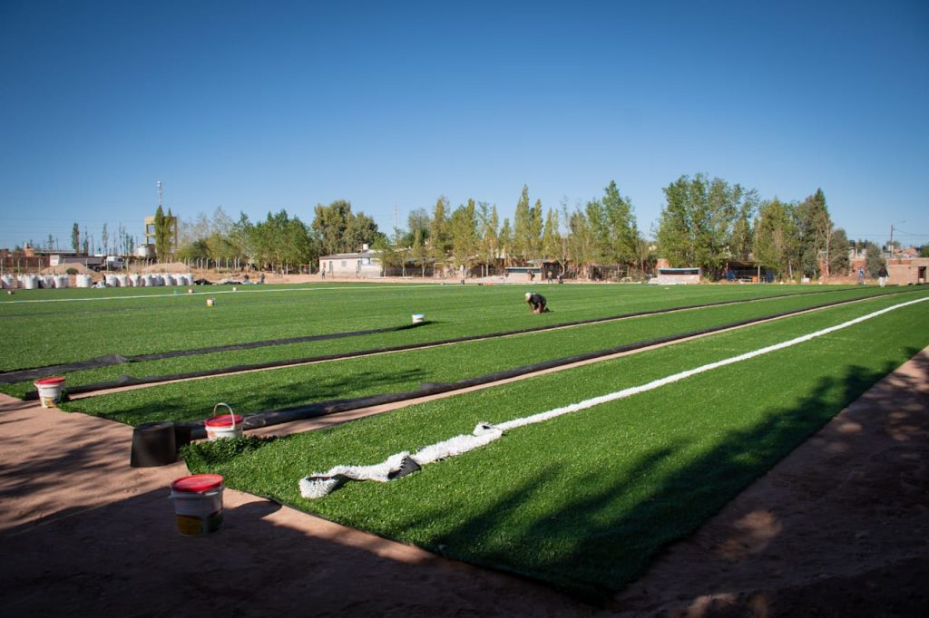 En la mañana del lunes 11 de marzo, el intendente de Cutral Co, Ramon Rioseco, estuvo recorriendo las obras junto al jefe de Gabinete, Walter Mardones donde ya se encuentran extendidos los paneles de césped artificial en el terreno de juego. También se está trabajando para colocar iluminación, algo con lo que no cuenta el predio hasta el momento.