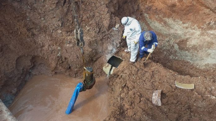 Se indicó que con esta tarea cumplida, los operarios comenzaron con las maniobras de reparación. Una vez descubierto el caño, se seccionaron las partes del ducto donde se encuentra la rotura y se midió la longitud del caño que se necesitó reemplazar.