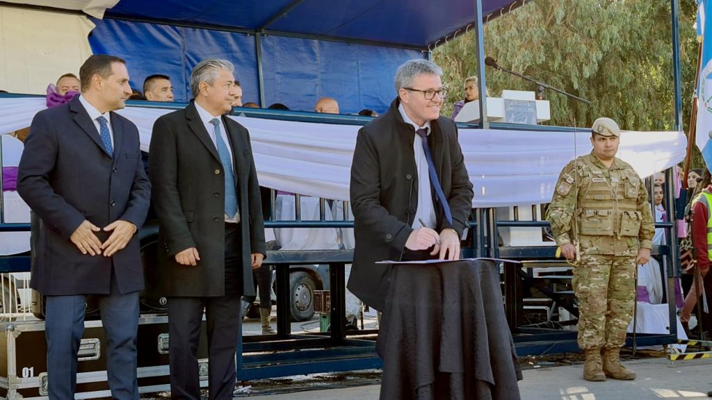 Durante el acto oficial por el 58° aniversario de Plaza Huincul, el gobernador Rolando Figueroa rubricó un convenio con el intendente Claudio Larraza, con el objetivo de concretar una cooperación técnica y financiera para la confección de los Códigos de Planeamiento Urbano y de Edificación de la localidad.