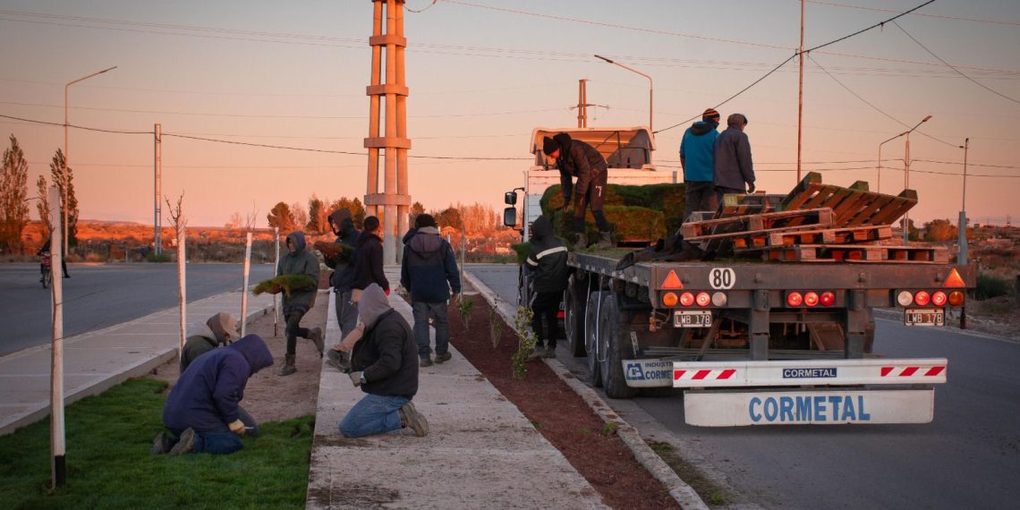 Este viernes, el municipio cutralquense continuó con la tarea de parquización en un sector de la ciudad. En este caso, el césped fue colocado en la avenida Juan Ariel Belardez.