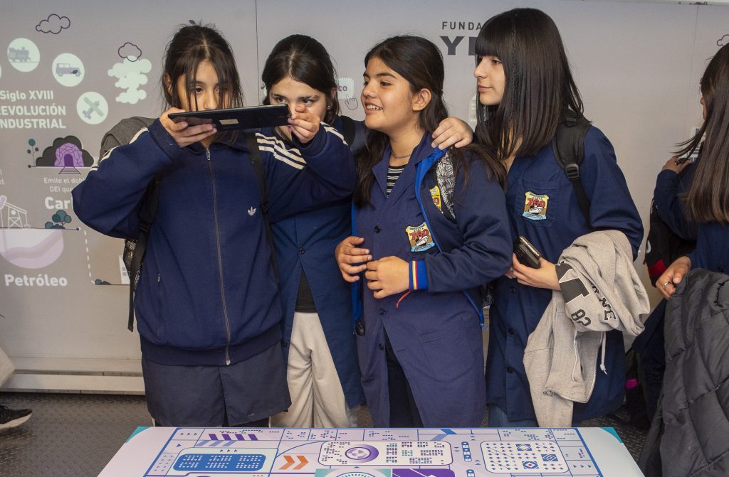 Fundación YPF ofrece en este espacio una propuesta educativa gratuita para todo público, con un muro interactivo de contenidos sobre la transición energética, tablets de realidad aumentada con la información de energías renovables y videojuegos sobre energías.