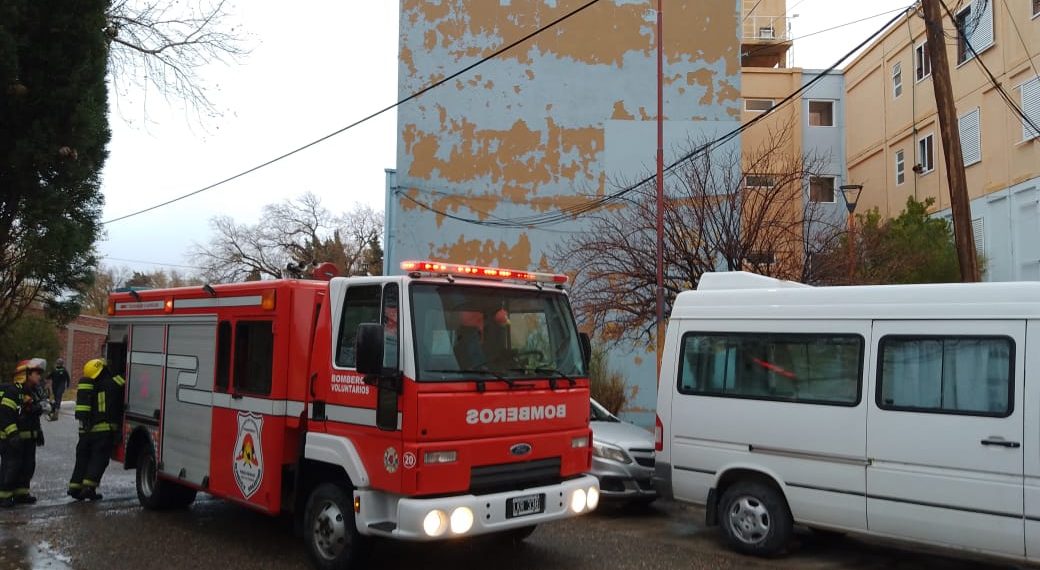 Los bomberos voluntarios de la Central N° 17 acudieron esta tarde, alrededor de las 17 a un llamado desde el barrio Suyai porque salía humo de una de las tiras de departamentos.