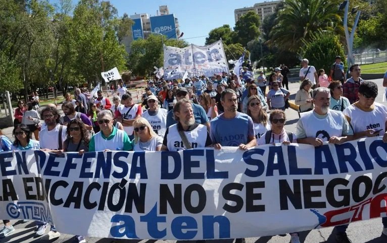 Desde el gremio neuquino ATEN se llamó también a sumarse a la protesta por el financiamiento educativo y la convocatoria a partiaria docente. Entre las demandas figura el pedido de aumento para las jubiladas y jubilados.