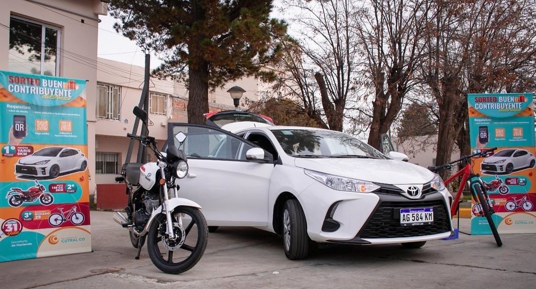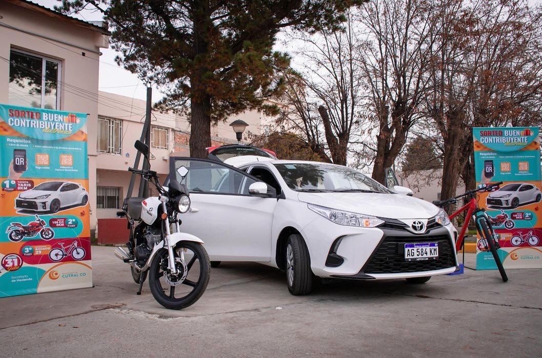 Desde la Secretaría de Hacienda se hizo la presentación del automóvil para el primer premio, la motocicleta y el bicicleta para los 2° y 3° puestos.