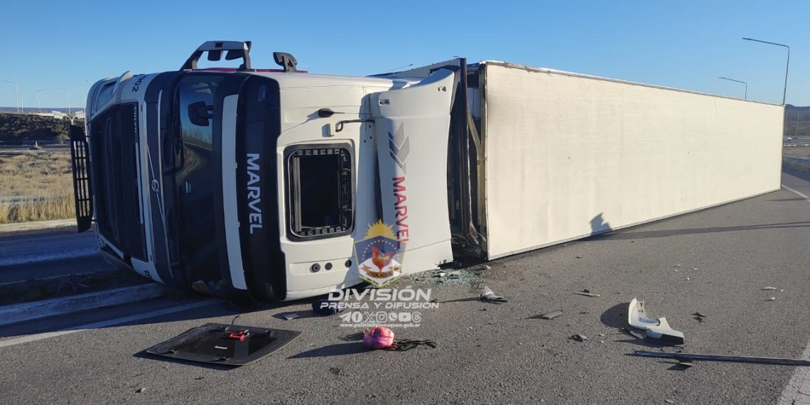 Esta mañana se produjo un incidente vial en la Autovía Norte y un camión con acoplado terminó sobre el asfalto luego de un vuelco que provocó demoradas al sector de ingreso a Plottier. El único ocupante era el chofer que no sufrió heridas, pero si una crisis nerviosa.