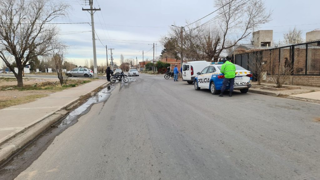 En la mañana de este martes, alrededor de las 10:00 horas, se produjo un accidente vial en el barrio Parque Este, detrás del Cristo, cuando una Chevrolet Meriva y una utilitaria Tracker colisionaron en la intersección de las calles que conducen hacia Plaza Huincul.