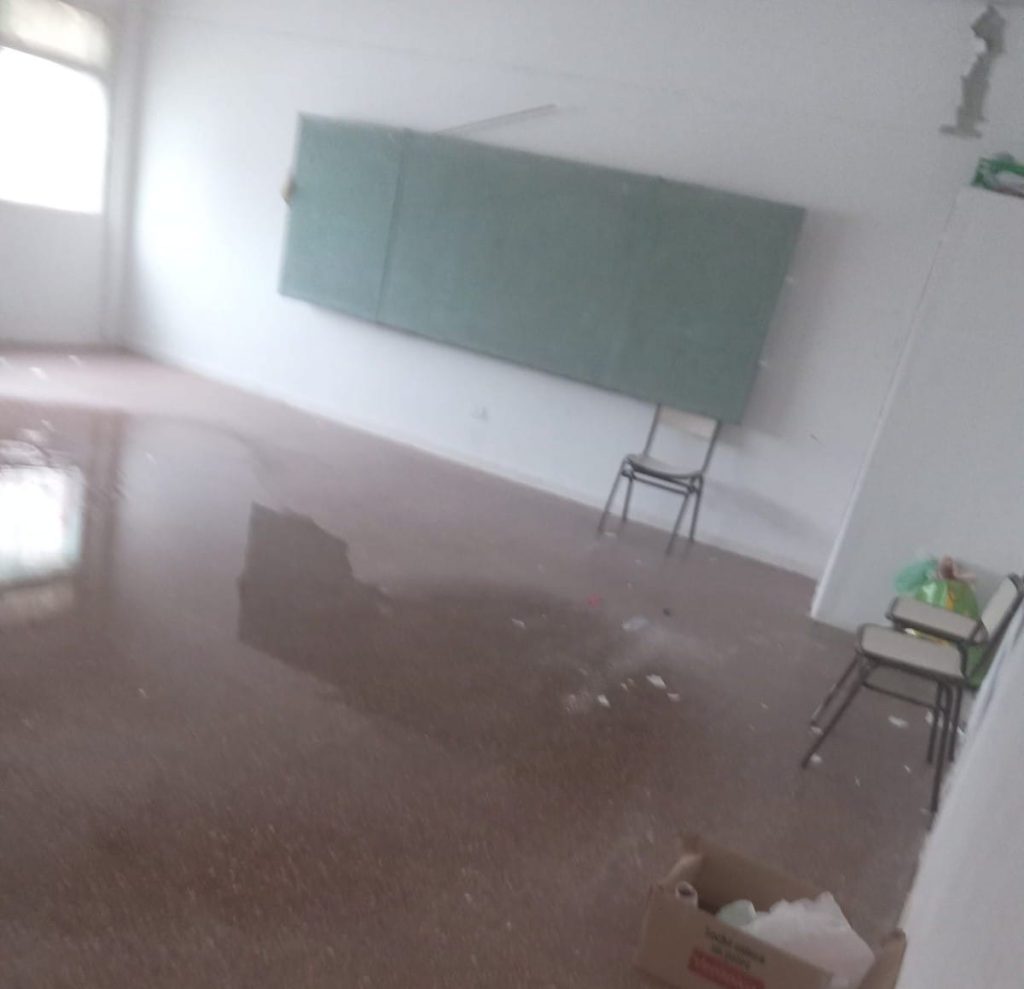 Las precipitaciones comenzaron el domingo y continuaron durante el lunes, agravando los problemas de filtración en la planta alta de la escuela. Según denuncias de la comunidad educativa, el agua se filtró en varias aulas, lo que ocasionó quejas masivas en las redes sociales. Un mensaje compartido por un padre expresaba: “Otra lluvia que nos deja inhabilitada la planta alta. ¿Por qué demoran tanto en aprobar esta obra? Están esperando que alguien quede electrocutado. Así estamos, sin en la cocina porque nadie compra la bomba y con agua por demás porque nadie arregla el techo”.