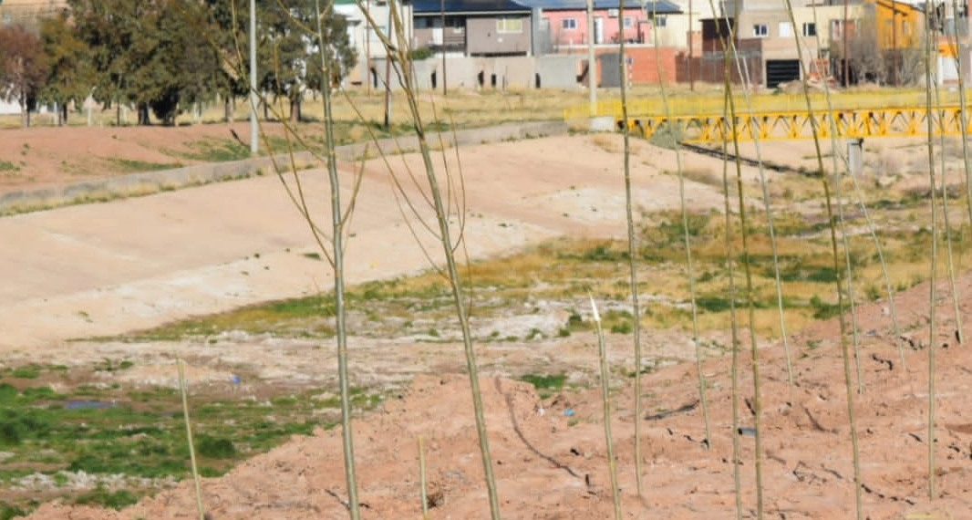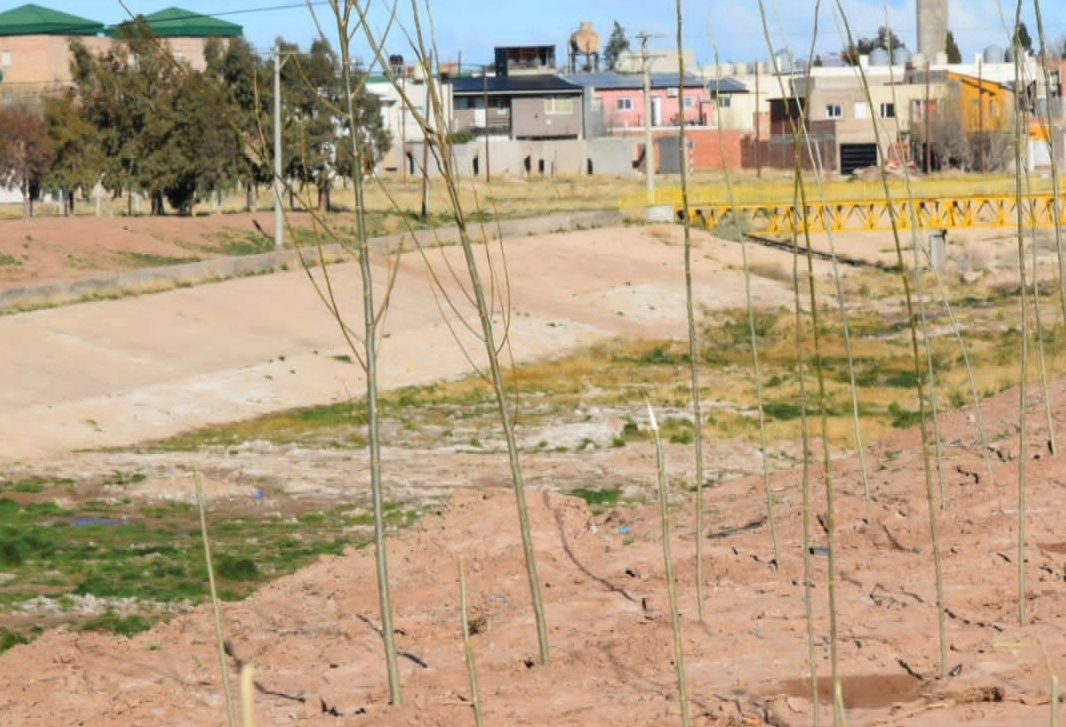 En las últimas semanas se había montado una cortina de álamos para delimitar el barrio del canal colector Zapala, el zanjón.
