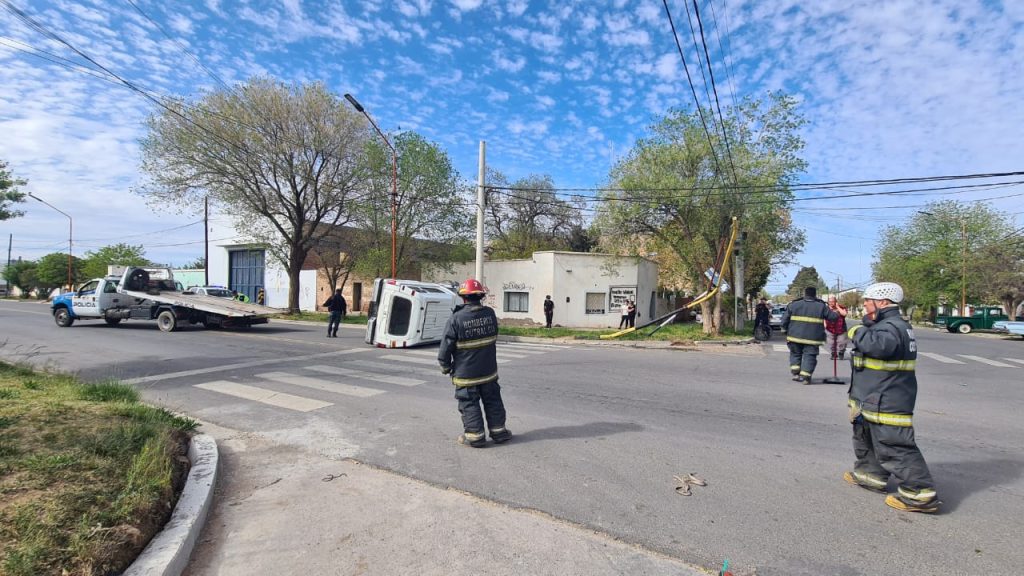 La camioneta quedó volcada sobre uno de sus laterales, lo que complicó las tareas de remoción del vehículo. El personal de Copelco también se hizo presente para colaborar en el retiro de los elementos derribados y garantizar la seguridad en la zona.