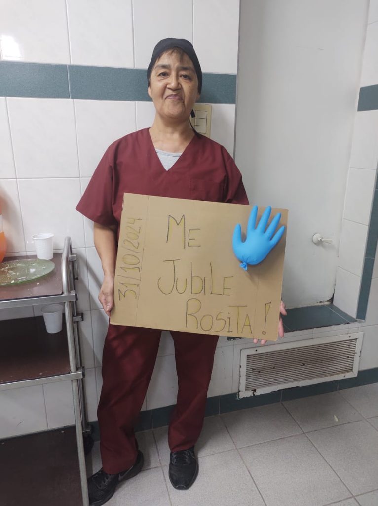 “Te queremos Rosita!. Te saludan tus compañeras de maestranza, y enfermeros! ❤️✨”