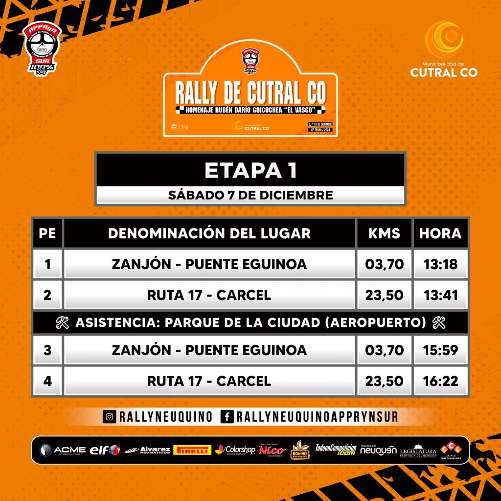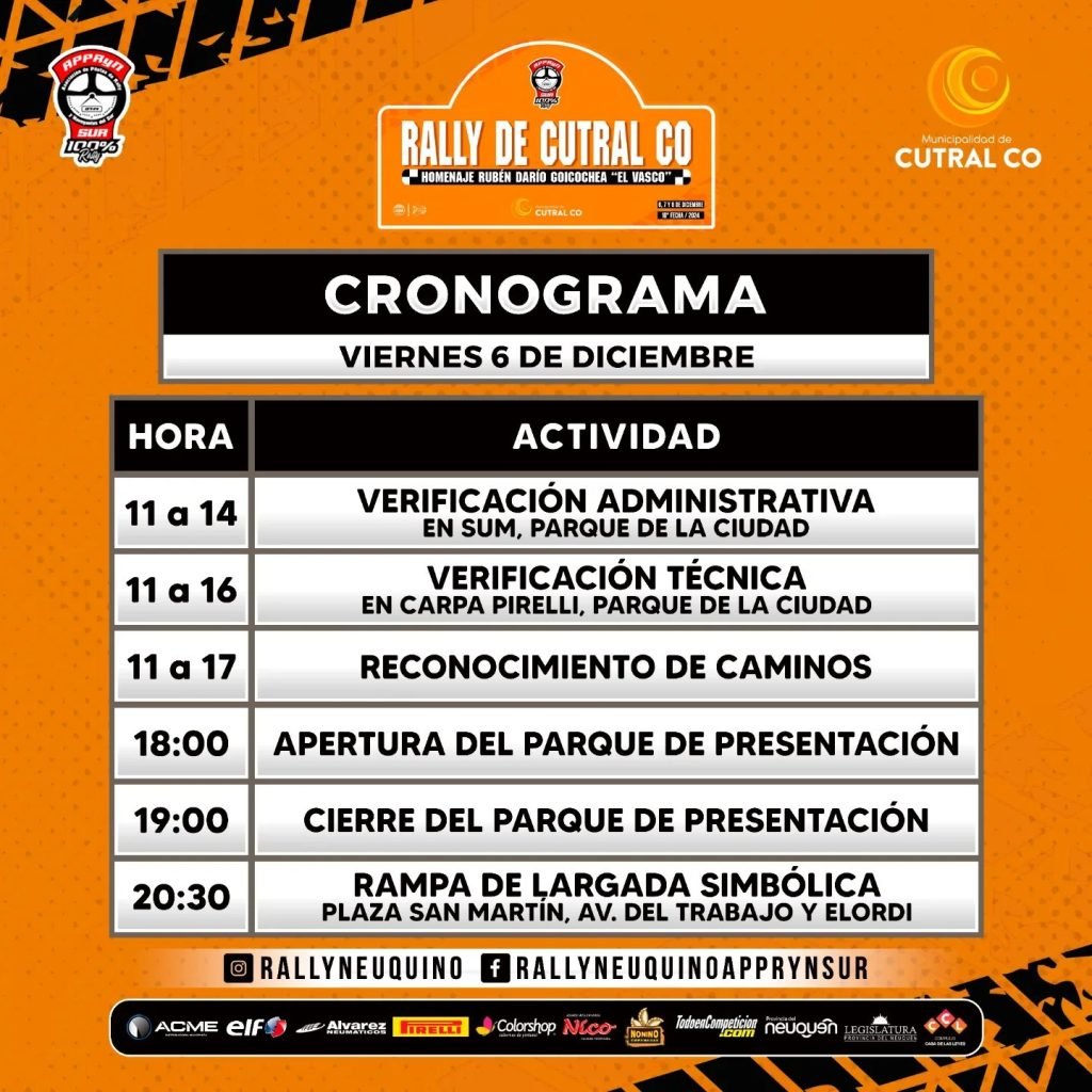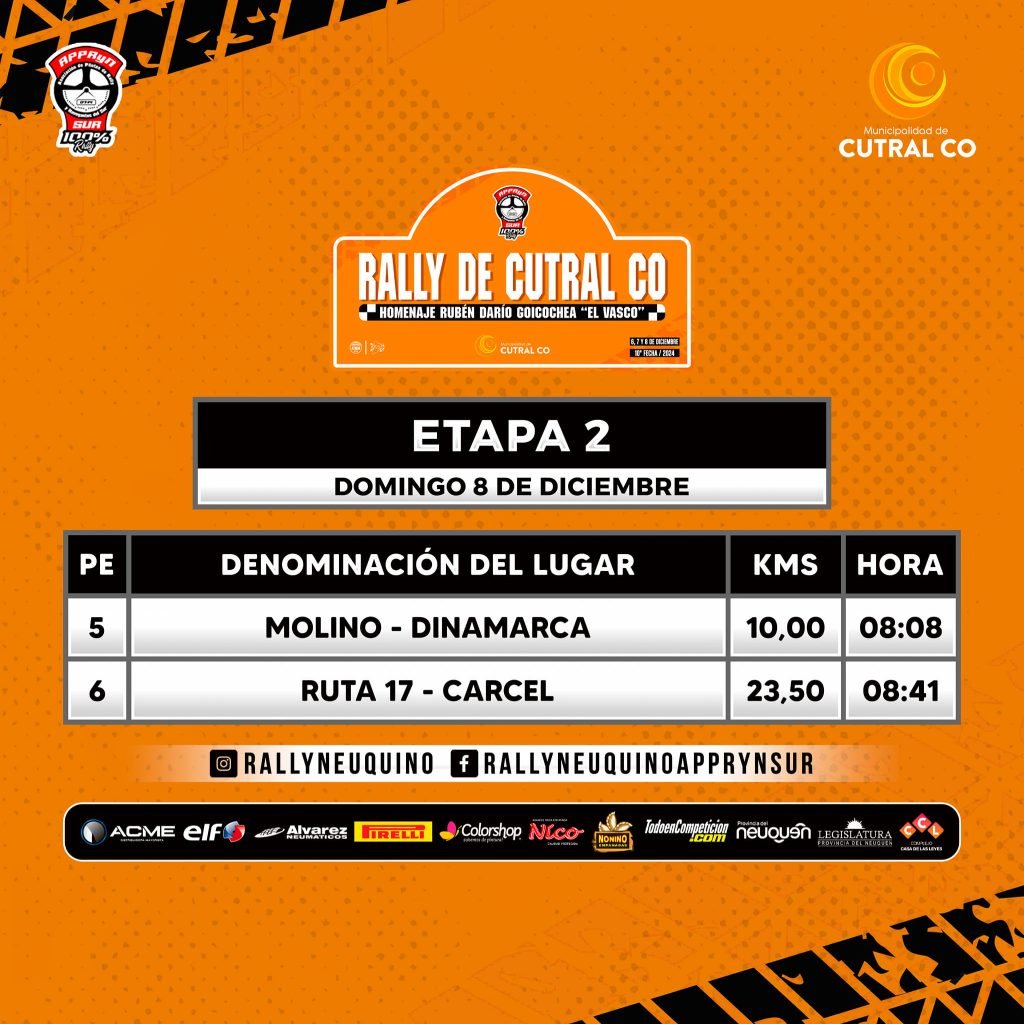 Se conoció como es el itinerario para la última fecha del Rally Neuquino que se corre en la ciudad de Cutral Co. Tres días para disfrutar del deporte motor.