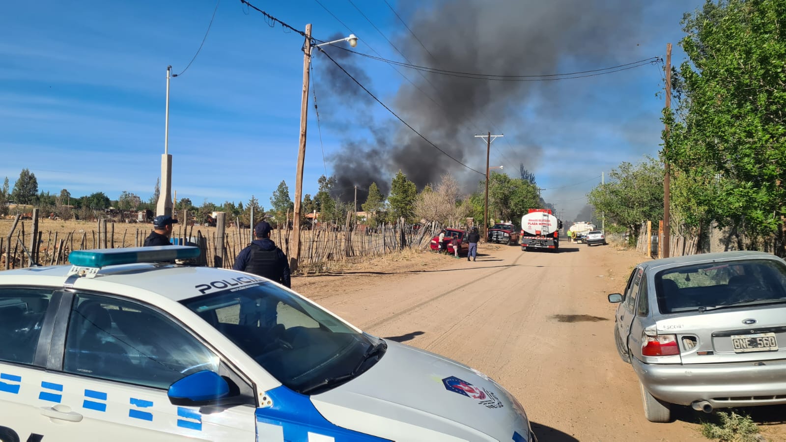Bomberos Voluntarios de Cutral Co tocaron dos veces la sirena esta mañana y enviaron dos dotaciones al lugar mientras que el cuartel de Plaza Huincul informó que envió el refuerzo hídrico, es decir el camión cisterna con agua para ayudar a controlar el fuego.