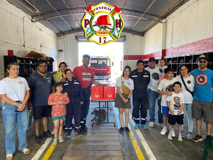 Las familias de Fernando Jara, Víctor Herrera y Gonzalo Molina llegaron hasta el cuartel de bomberos voluntarios de Plaza Huincul con cajas navideñas.