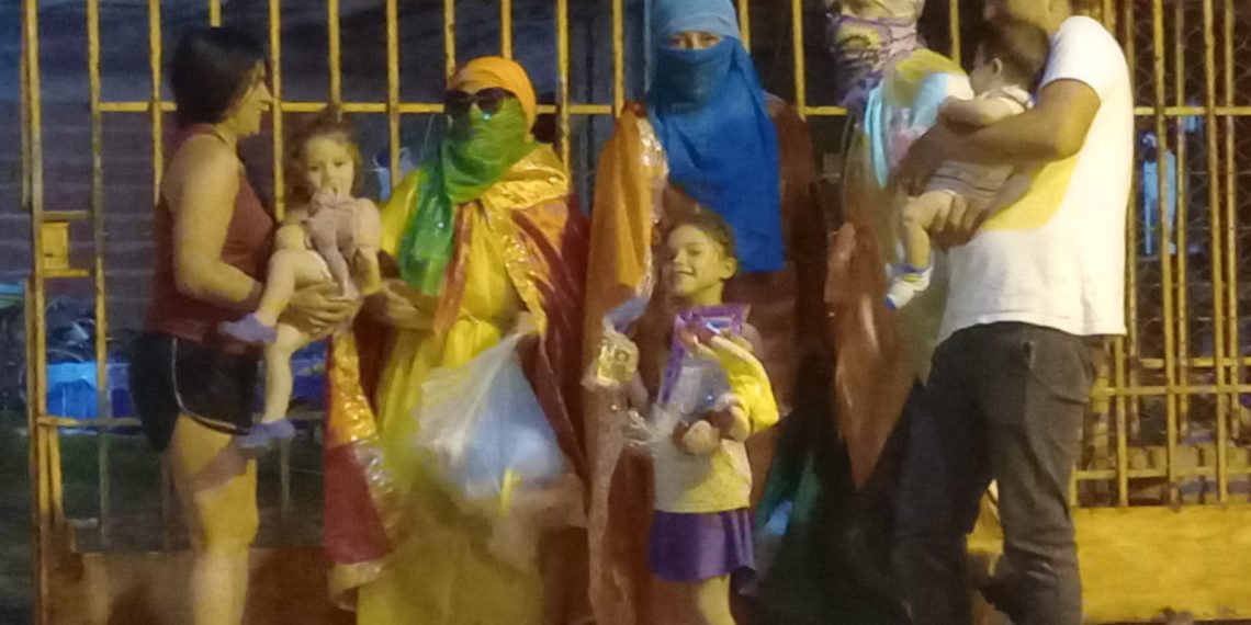 No es la primera vez que los seres mágicos se organizan en esta barriada para visitar a las niñas y niños que sorprendidos disfrutaron de su presencia.