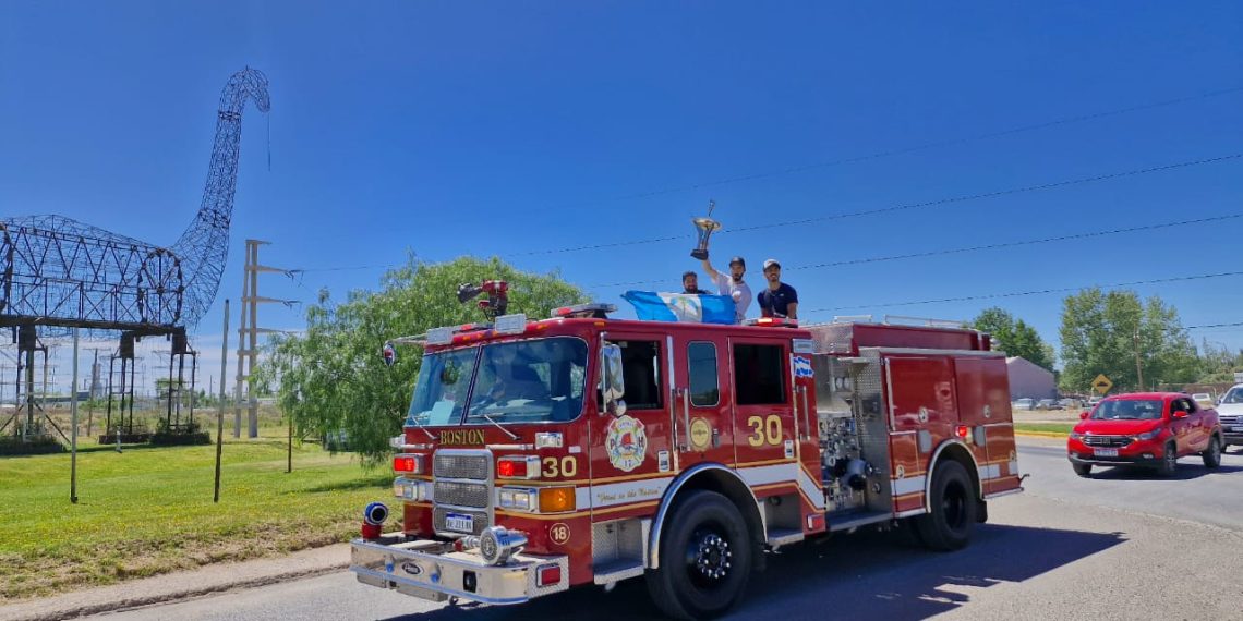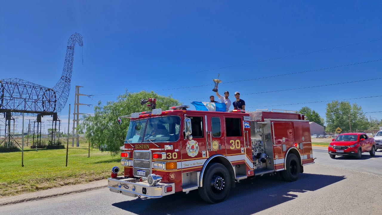 Máximo Ramírez regresó triunfante tras consagrarse como campeón en el Festival Nacional de Malambo en Laborde, Córdoba. Fue recibido por bomberos, una gran caravana de vecinos orgullosos y la Subsecretaria de Cultural de la Municipalidad Cutral Co, Cintya Ferreyra Mesa.