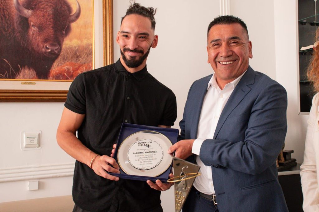 El intendente de Cutral Co, Ramón Rioseco, recibió en su despacho a Máximo Ramírez, flamante campeón nacional de malambo en el prestigioso Festival Nacional de Malambo, realizado en la ciudad de Laborde, Córdoba. Durante el encuentro, el mandatario hizo entrega de un reconocimiento especial al talentoso bailarín, quien representó con orgullo a Cutral Co y a la provincia de Neuquén en este evento de relevancia nacional.