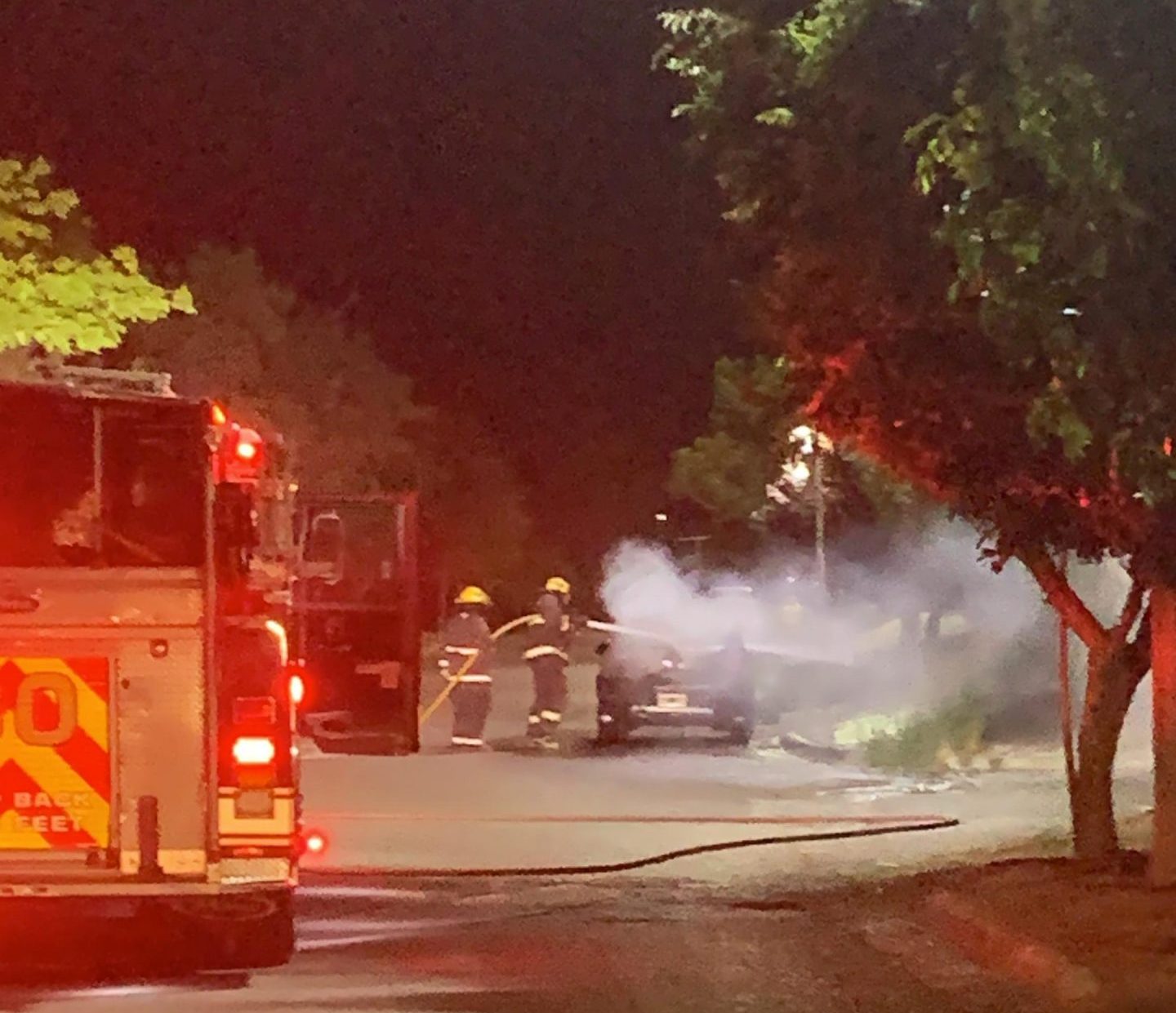 A la medianoche, los bomberos voluntarios de Plaza Huincul acudieron a la calle Belgrano para extinguir el incendio que se había iniciado en un automóvil.