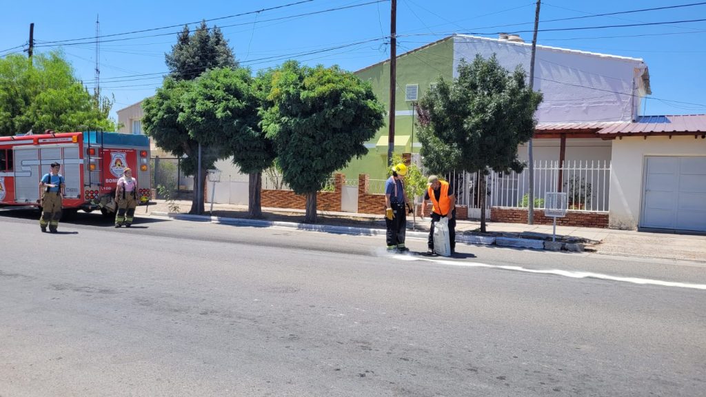 Una vez que se aplicó el polvo absorbente -a lo largo de la calle mencionada- el camión de bomberos con el personal retornó a su lugar.