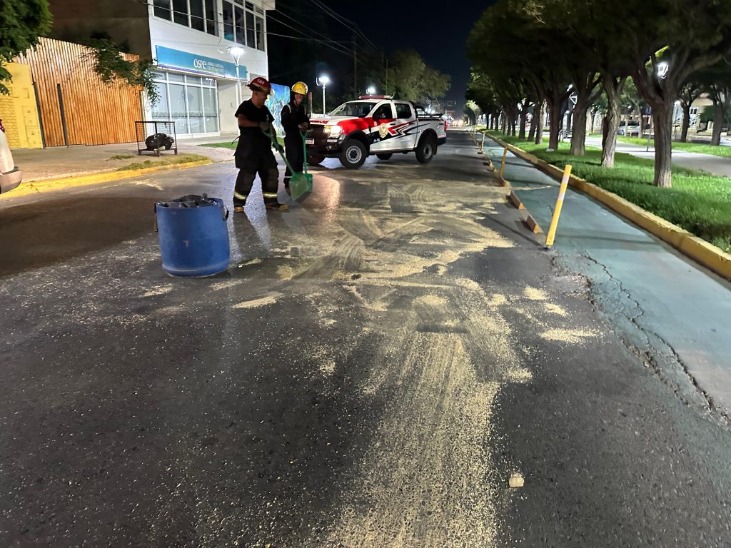 Según se informó desde bomberos voluntarios, al arribar al lugar del derrame no estaba el vehículo que lo causó. Trabajó una dotación para controlar el combustible y retirarlo.