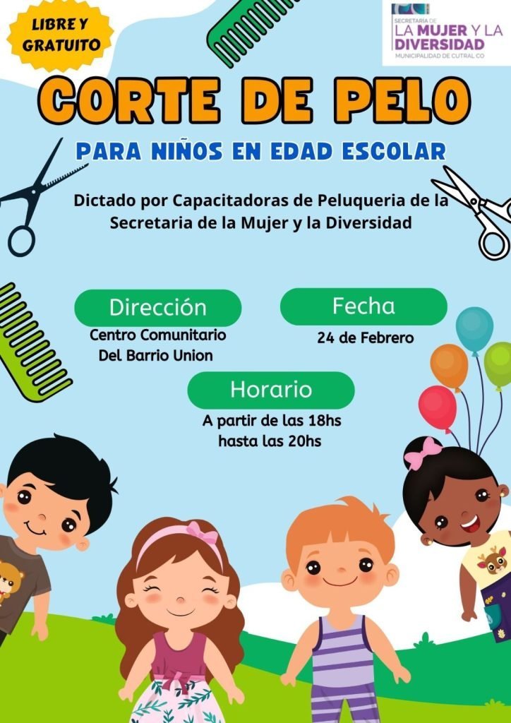 La Secretaría de la Mujer y la Diversidad organizará una jornada de corte de pelo gratuito para niños en edad escolar, con el objetivo de colaborar con las familias en la preparación del inicio de clases. La actividad se llevará a cabo el próximo lunes 24 de febrero en el Centro Comunitario del barrio Unión.
