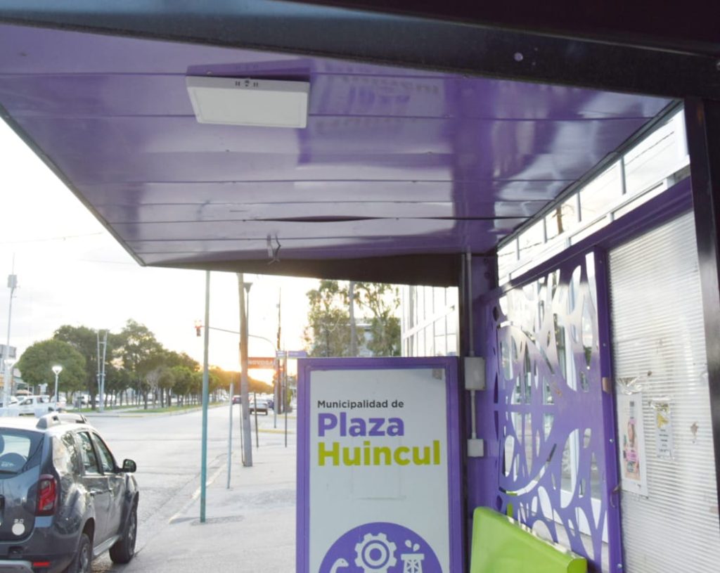 En este caso se trata de la iluminación que se instaló en la garita de colectivos, sobre avenida Keidel casi 9 de Julio, en el límite con la ciudad de Cutral Co.