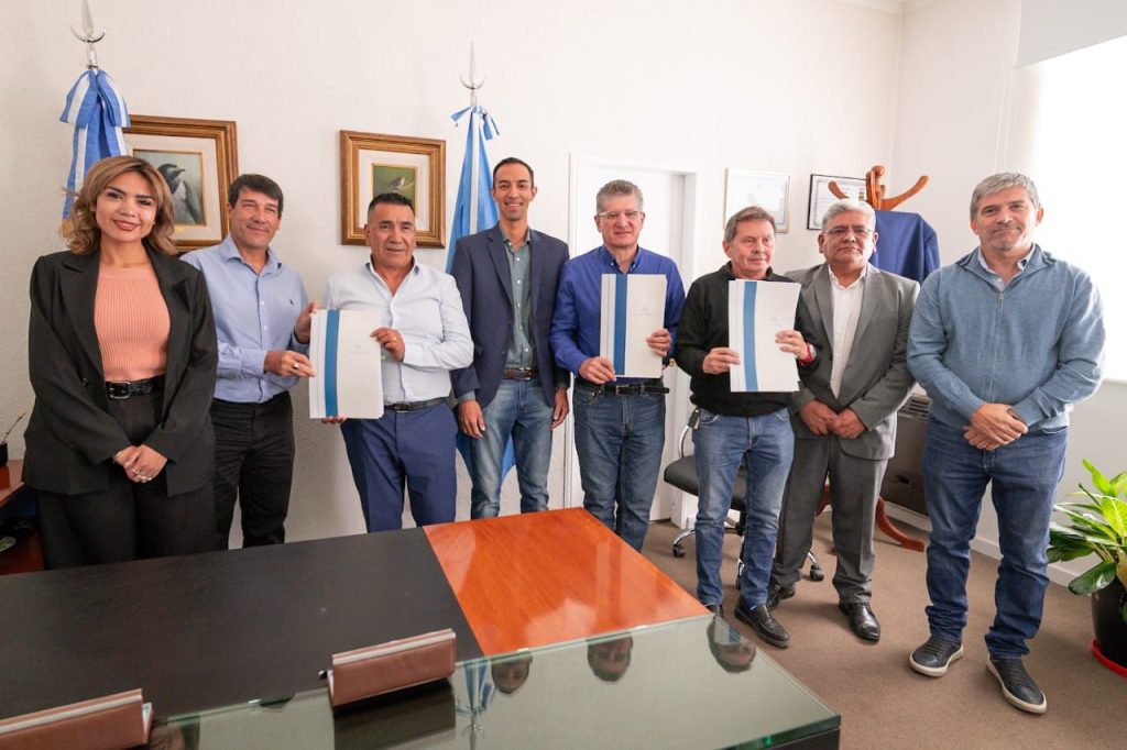 Hoy, el intendente Ramón Rioseco encabezó la firma de convenios con las empresas Rapi Const, Instalquen y Ríos del Norte. Lo hizo acompañado por el secretario de Obras Públicas, Henry Torrico, el presidente del Concejo Deliberante, Jesús San Martín, y la concejal Jesica Rioseco.