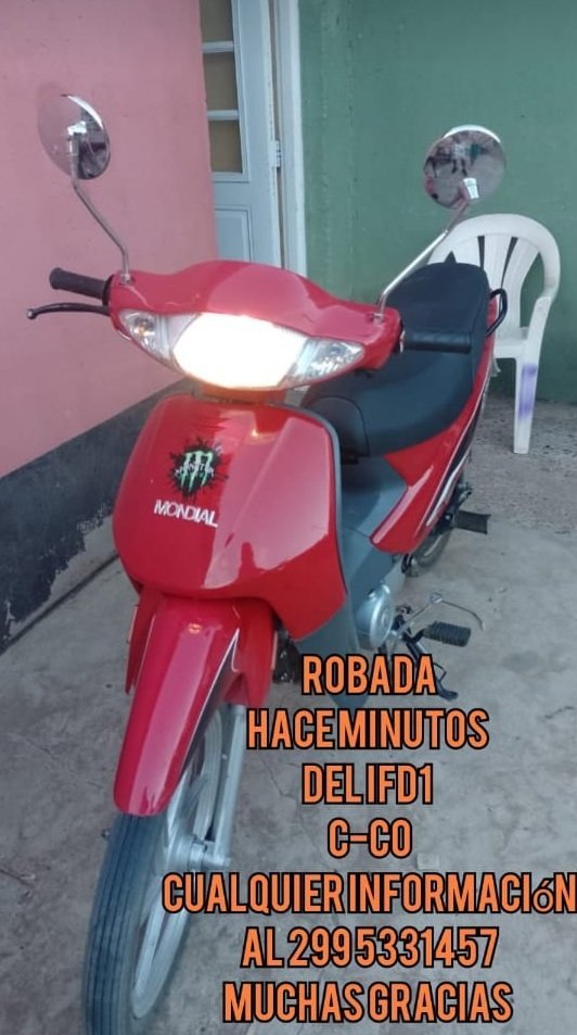 Uno de los casos ocurrió en el barrio Aeroparque. El hecho ocurrió al mediodía en una vivienda de la calle San Martín, a la altura de Santa Isabel. Se trata de una Honda Wave 110 centímetros cúbicos. Hay que comunicarse al 2994104585.