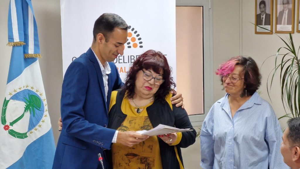 Integrantes de la Asociación de Familiares de Detenidos, Desaparecidos y Expresos Políticos de Cutral Co y Plaza Huincul recibieron la declaración de interés a todas las actividades que se desarrollan este mes, para conmemorar el 24 de marzo, día de la Memoria, por la Verdad y la Justicia.