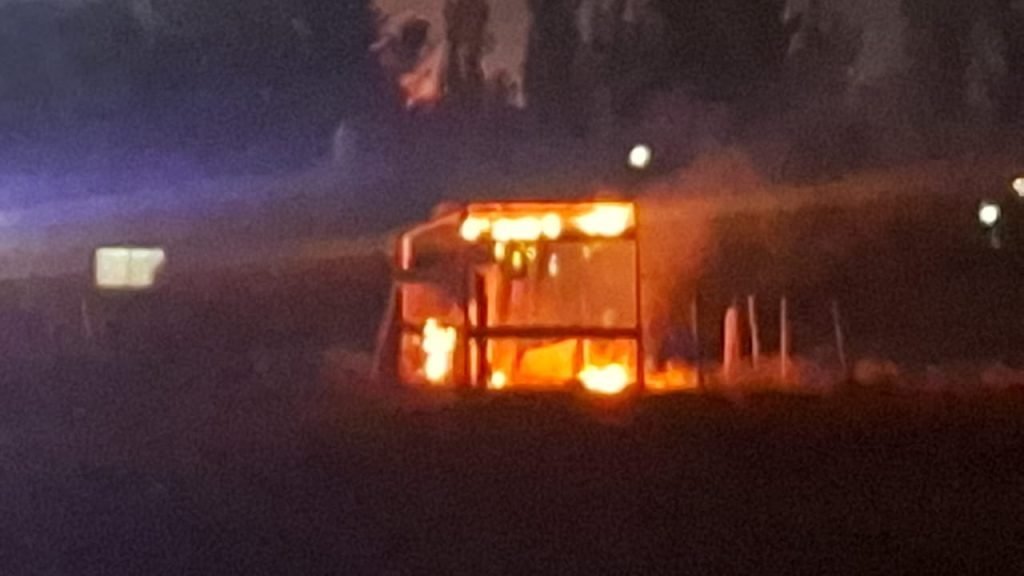 Se trata del fuego que tomó a una construcción que está situada sobre la calle Belgrano al final, en cercanías al nuevo reservorio que se ubica en el sector.
