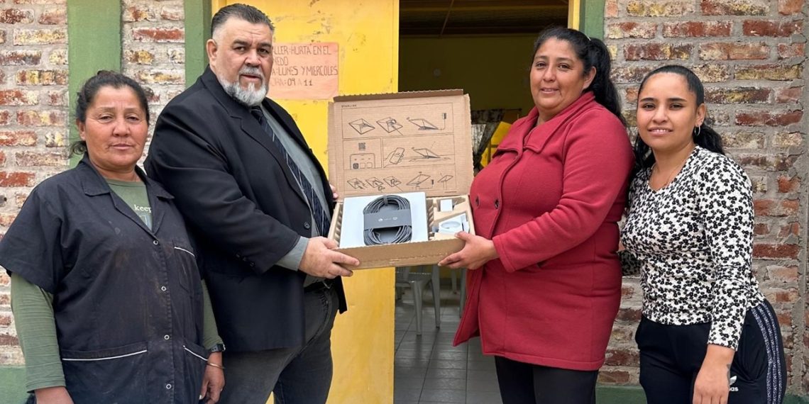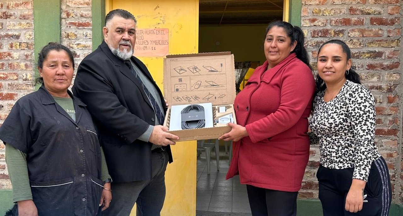 El concejal del MID Fabián Godoy realizó la entrega de antenas de internet satelital a tres comisiones barriales de Cutral Co, dos se encuentran al norte de la ciudad y uno al sur.