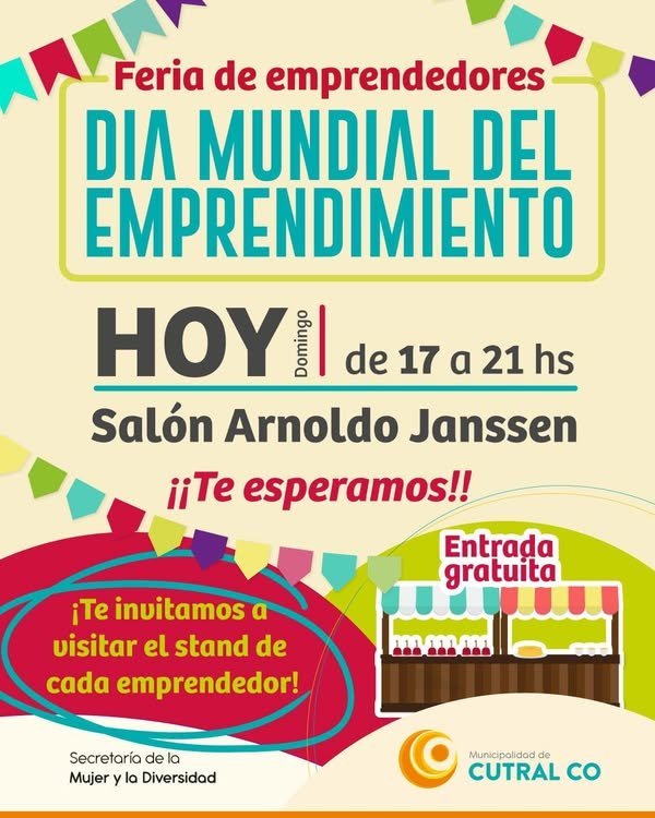 Con motivo del Día Mundial del Emprendimiento, se llevará a cabo una feria de emprendedores el próximo domingo, de 17 a 21 horas, en el Salón Arnoldo Janssen, con entrada libre y gratuita.