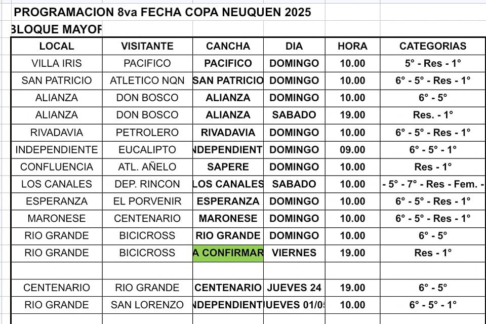 Para el partido entre Rivadavia y Petrolero tendrá programación oficial. Los partidos del sábado se juegan a partir de las 10 de la mañana en la categoría 7ma, luego jugará 8va, 9na, 10ma y cierra el Femenino. El domingo, los partidos comienzan a las 10 de la mañana con 6ta, luego juegan 5ta, Reserva y cierra Primera a las 16 horas.