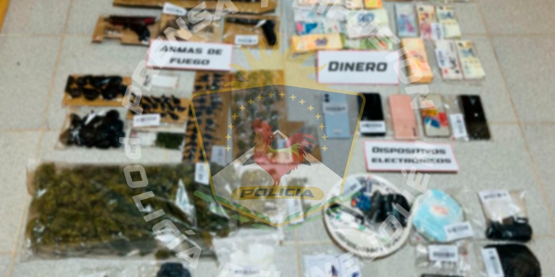 Además, se incautaron más de 3 millones de pesos en dinero en efectivo, un vehículo utilizado para el transporte de las sustancias, cinco armas de fabricación casera, cinco celulares, una balanza de precisión y otros elementos relacionados con la actividad delictiva, como recortes de nylon y anotaciones.