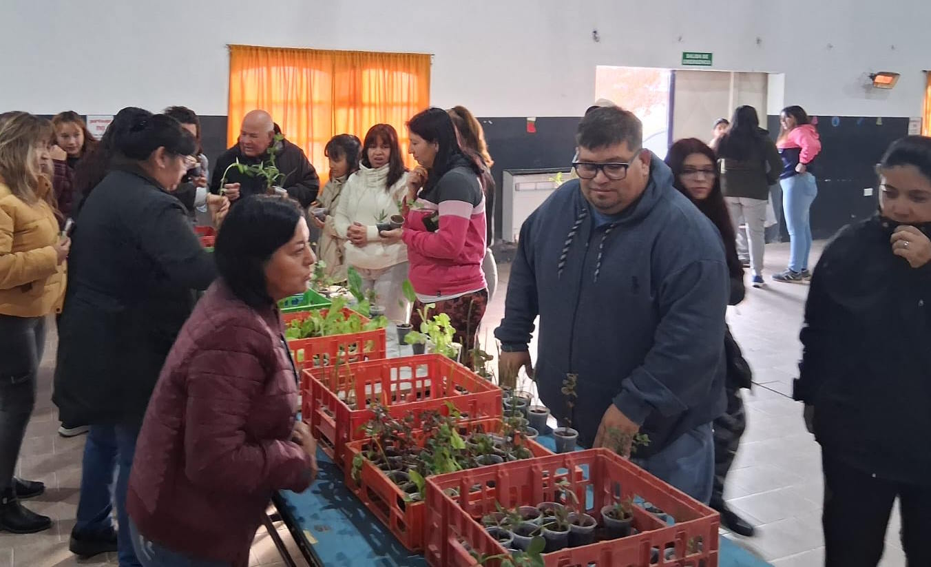 Se trata de plantines de hortalizas que se pueden retirar en la sede, ubicada en Chubut y Antártida Argentina del barrio Otaño de Plaza Huincul. Comenzó la actividad a las 9